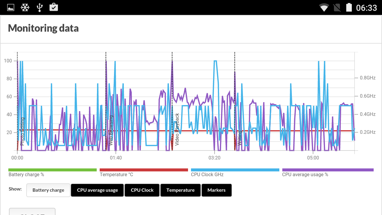 Anstatt denselben 1,7 GHz schnellen MediaTek-MT6592-SoC samt Mali-450-MP4-GPU wie beim Y100 zu benutzen, hat Doogee das Pro-Modell mit dem langsameren 1,5 GHz MediaTek-MT6735-SoC und der Mali-T720-GPU ausgestattet. Laut CPU-Z läuft der Quad-Core in unserem Y100 Pro aber nur mit 1,0 GHz, was auch von PCMark bestätigt wird. Im Leerlauf werden alle Kerne bis auf einen deaktiviert, der mit 221 MHz taktet um Energie zu sparen.
