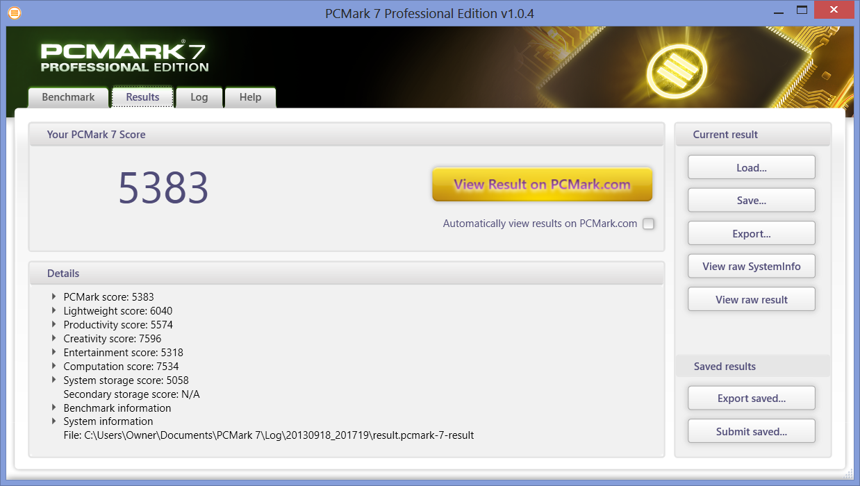 | PCMark 7 Score | 5383 Punkte | |