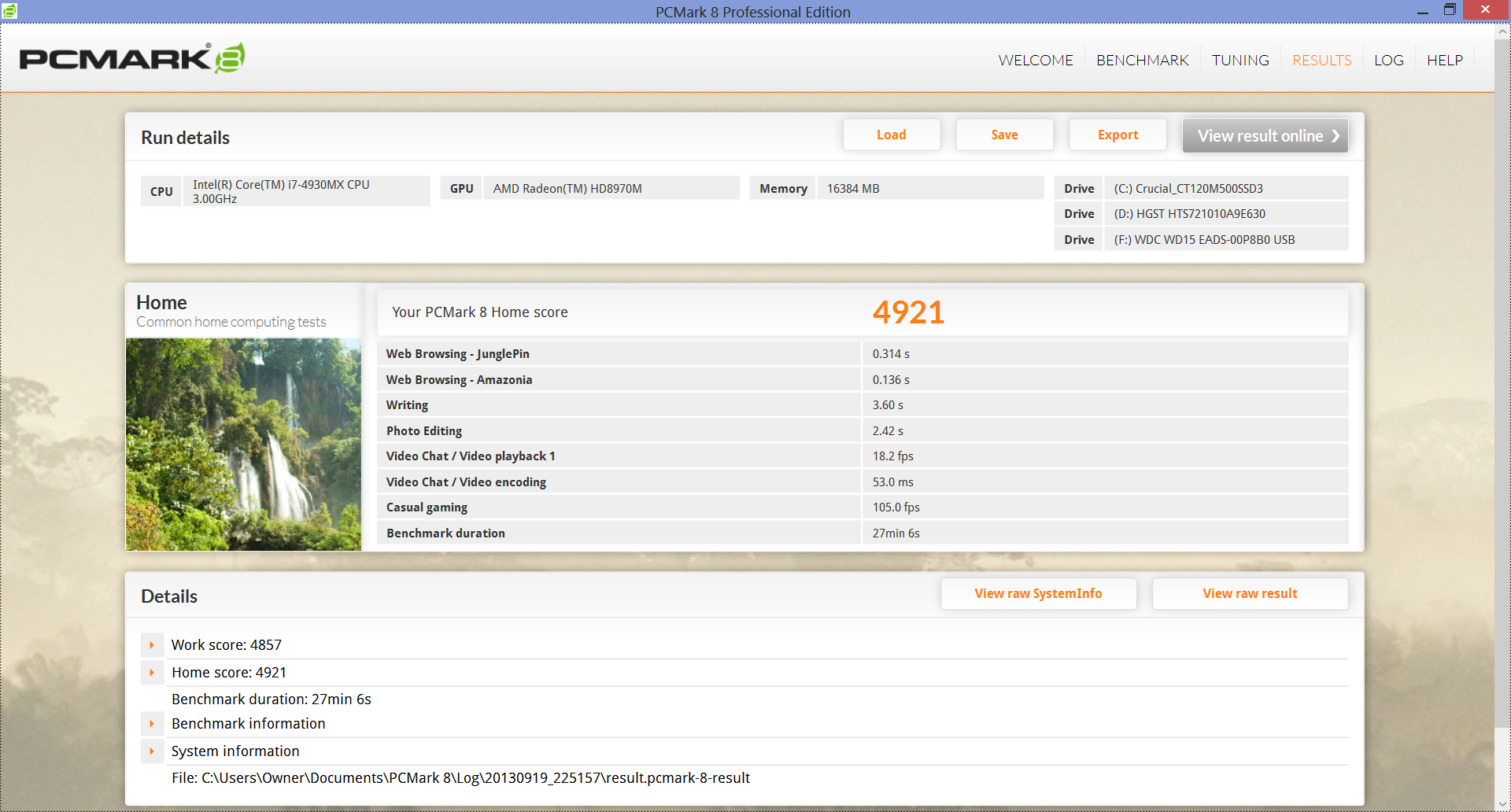 | PCMark 8 Home Score Accelerated | 4921 Punkte | |