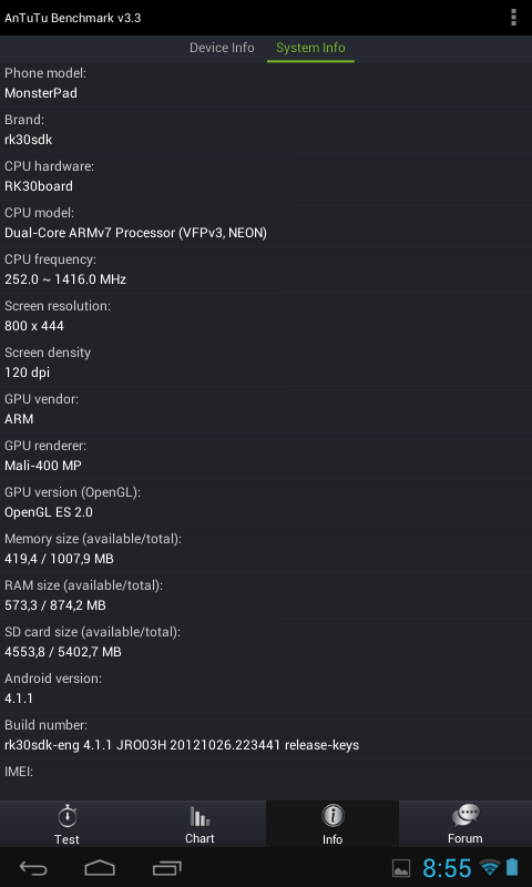 Die technischen Daten des Easypix MonsterPad Red Ninja weisen den Weg zur soliden Einsteigerklasse. Aus diesem Segment hatten wir in den vergangenen Wochen mit dem Acer Iconia Tab B1 und dem Asus Memo Pad zwei "prominente" Vertreter zum Test, die aufgrund ihrer Ausstattungsmerkmale als Vergleichsgeräte für das Kinder-Tablet herhalten müssen. Herzstück des MonsterPad ist das Dualcore-SoC (System-on-Chip) Rockchip RK3066, der laut Herstellermit 1,6 GHz getaktet sein soll, tatsächlich aber nur mit 1,4 GHz arbeitet. Die GPU ist eine ARM Mali-400 MP4. Dazu gibt es 1 GB Arbeitsspeicher und 8 GB internen Speicher, womit sich das Easypix Red Ninja genau zwischen den Modellen von Acer und Asus einsortiert.
