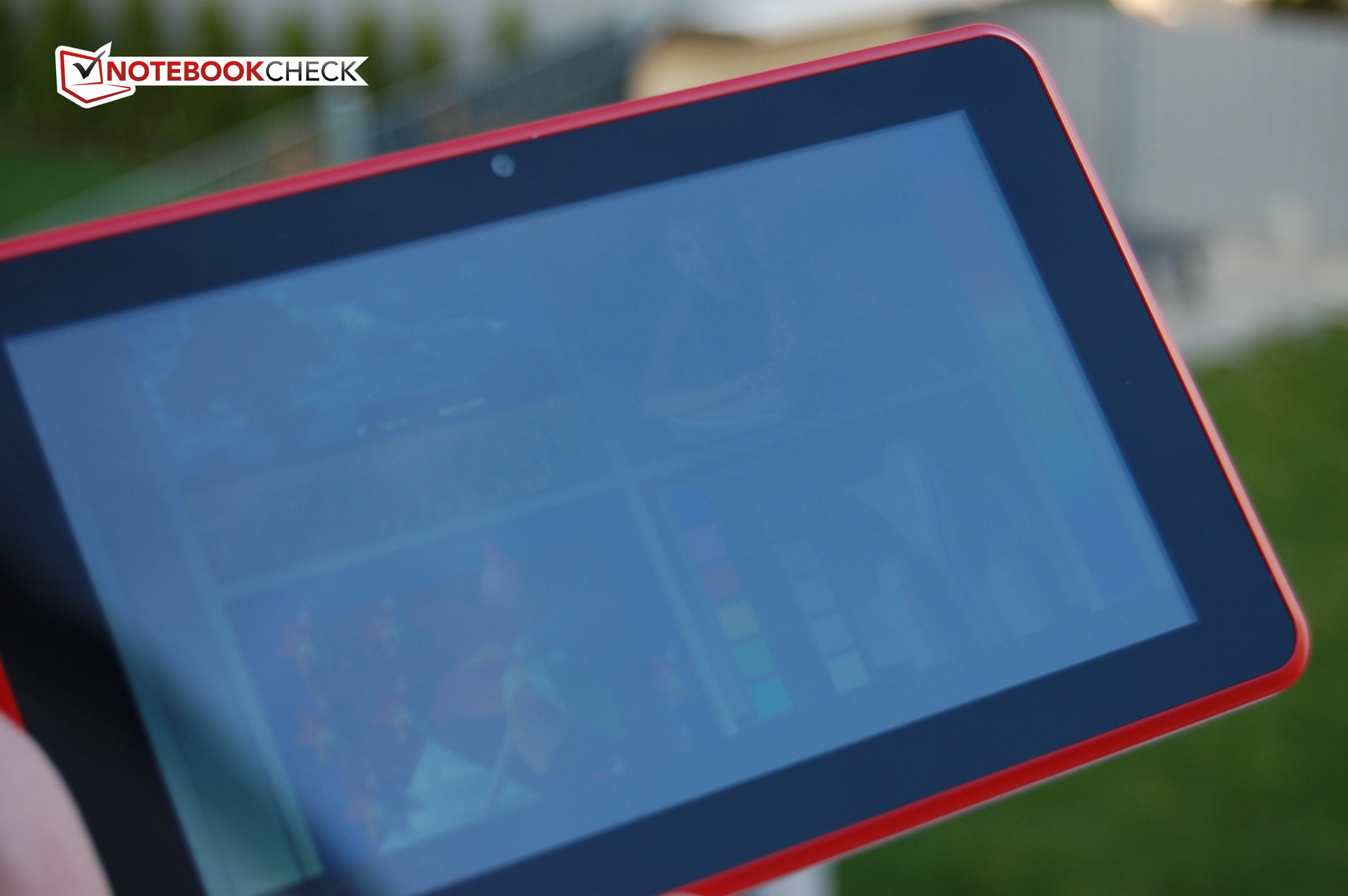 Es handelt sich um ein 7 Zoll kleines TN-Display mit einer WVGA-Auflösung von 800 x 480 Bildpunkten. Damit liegen Auflösung und Pixeldichte noch unter den Einstiegsmodellen Acer Iconia B1 und Asus Memo Pad ME172V. Das Braun B-Tab, eines der bisher am schlechtesten bewerteten Tablets bei Notebookcheck – besitzt dieselbe Auflösung wie das Red Ninja. Die geringe Pixeldichte von nur 133 PPI führt dazu, dass einzelne Bildpunkte erkennbar sind, besonders bei kleinen Schriften. Insgesamt mangelt es der Darstellung an Schärfe.
