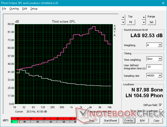 (+) | Die Lautsprecher können relativ laut spielen (86.7 dB)