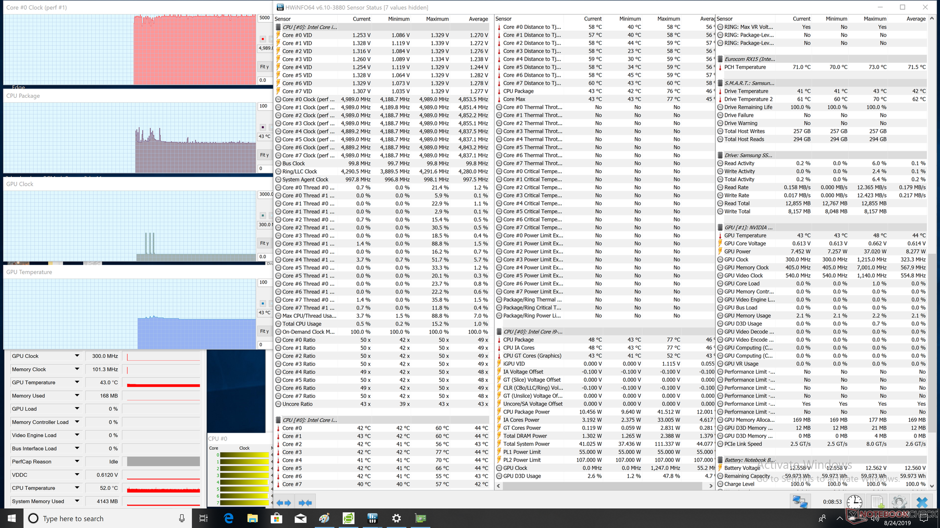 Einige Laptops, die mit dem "langsameren" Core i9-9880H ausgestattet sind, wie zum Beispiel das MSI GE75 9SG, können in der Praxis schneller sein, wenn sie ihre Turbo-Boost-Taktfrequenzen unter Last für längere Zeiträume aufrechterhalten können.