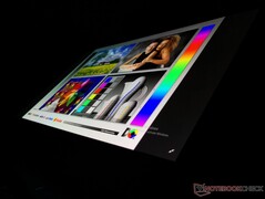 Die Lesbarkeit im Freien ist im Schatten besser als beim matten IPS-Panel des Nightsky Ti15. Aufgrund des stärker reflektierenden OLED-Displays ist die Lesbarkeit im Freien an sonnigen und bewölkten Tagen hingegen weder besser noch schlechter als beim zuvor erwähnten Nightsky Ti15. Die großen Blickwinkel sind mit denen des Dell XPS 15 7590 identisch.