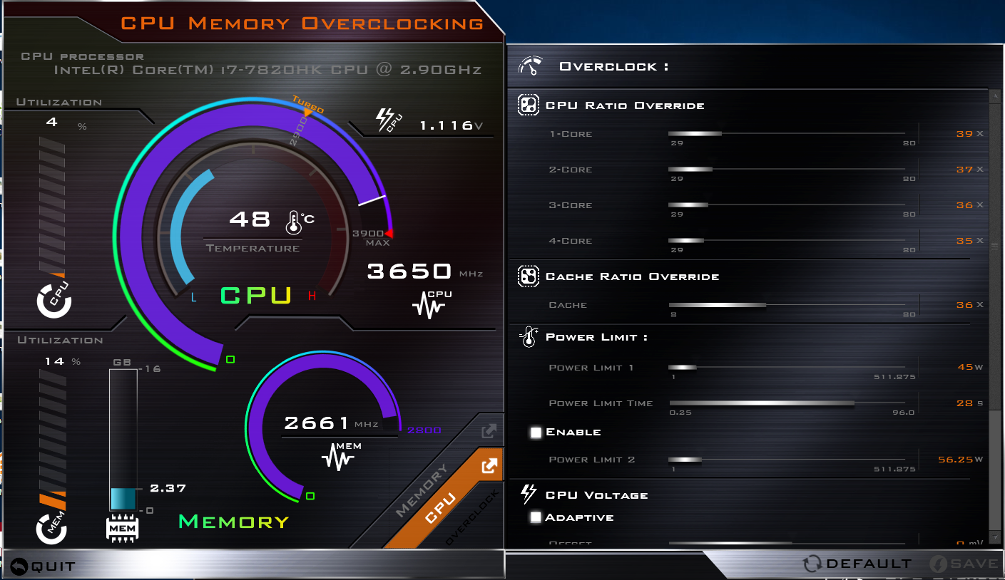 Obwohl sich die CPU auch auf klassischem Weg über das BIOS-Setup übertakten lässt, bietet Clevo anders als andere Hersteller keine moderne grafische Oberfläche zum Übertakten via BIOS an.
