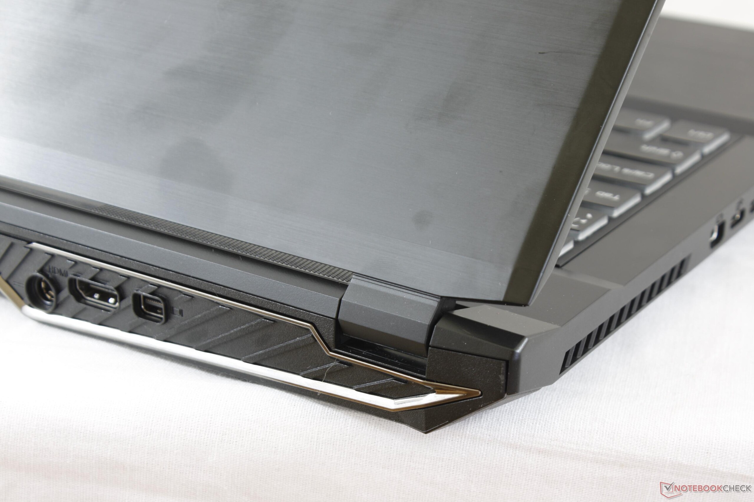Die Stabilität der Base ist hervorragend und Kraftausübung auf die Tastatur und die Handballenablagen sowie seitliche Verwindungskräfte haben nur minimale Auswirkungen. Es kommt zu kaum hörbarem Knarzen, was jedoch im Alltag unbedeutend sein sollte. Der Deckel kann da hingegen nicht mithalten: Der Bildschirm biegt sich deutlich mehr durch, als dies bei Konkurrenten wie dem Alienware 15 oder dem XPS 15 der Fall ist. Besonders flexibel ist der Bereich zwischen den Scharnieren. Diese sind wiederum recht fest und wippen kaum nach, der Öffnungswinkel beträgt 140 Grad.
