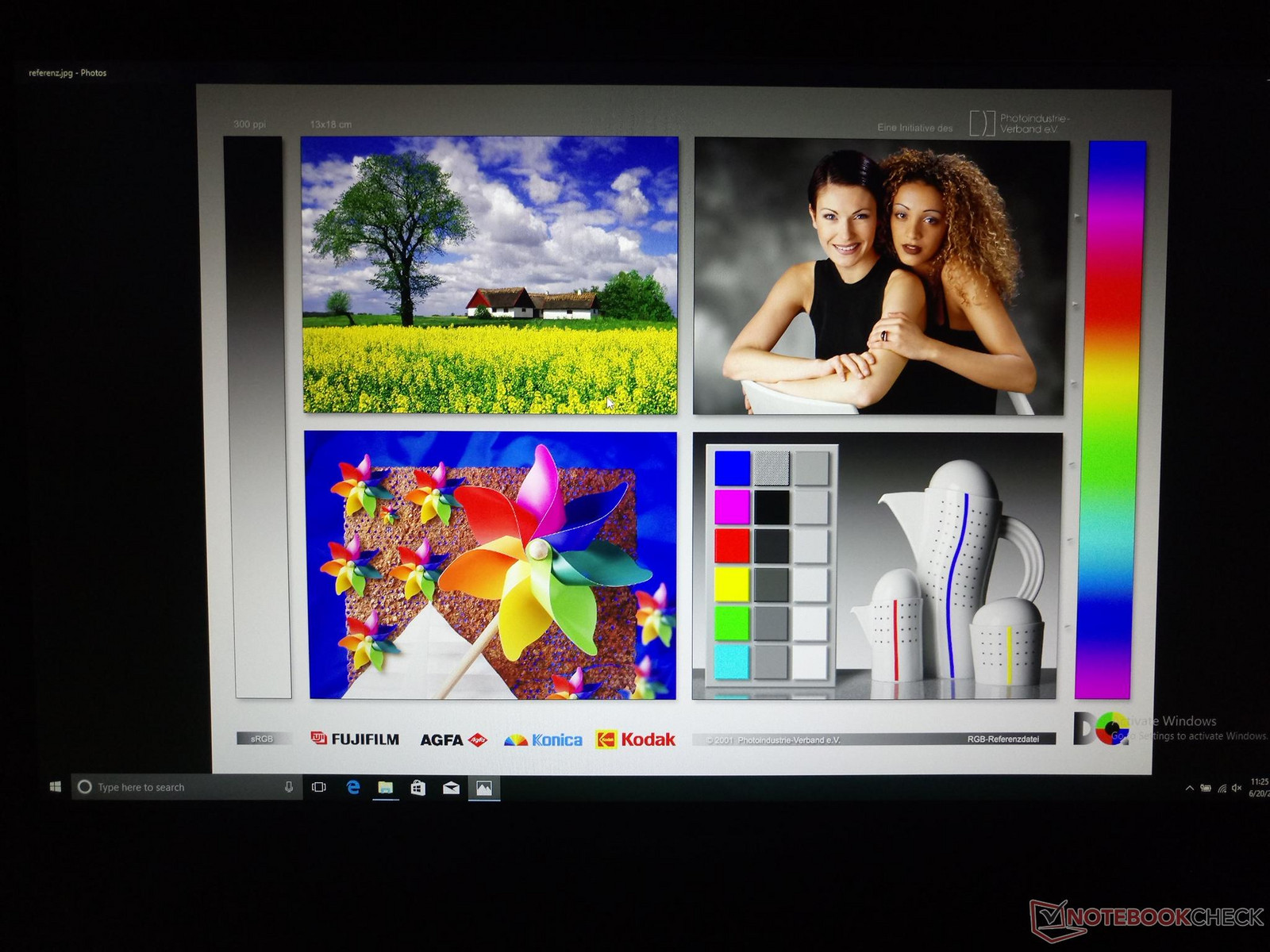 Die Farbraumabdeckung liegt bei 86 % sRGB und 57 % AdobeRGB, was in etwa den Werten des LG-Philips-Panels aus dem Predator 15 entspricht und auf ein sehr hochwertiges TN-Panel hinweist. Obwohl dies beim Gaming eine eher untergeordnete Rolle spielt, bieten manche Hersteller wie z. B. Gigabyte oder Razer Panels mit noch akkuraterer Farbraumabdeckung an.