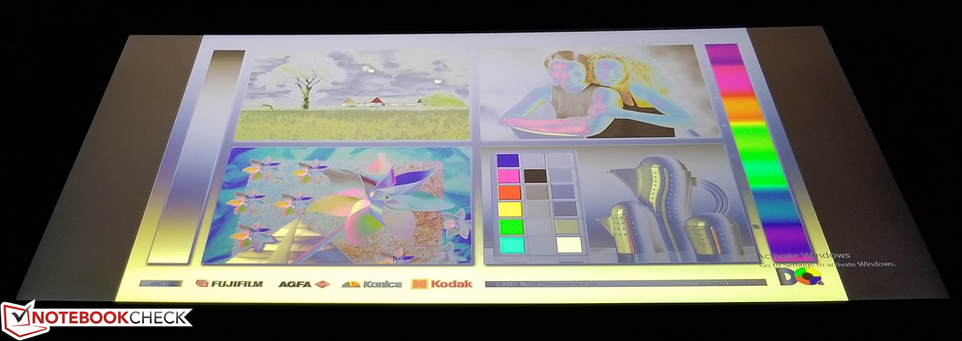 Die Messungen bestätigen unseren ersten Eindruck: Der Bildschirm bietet eine gute durchschnittliche Helligkeit von 397 cd/m² (max.: 412,7 cd/m²) mit einer Ausleuchtung von 92 % (auch sehr gut). Das Kontrastverhältnis von 624:1 reicht dank eines recht guten Schwarzwerts von 0,65 cd/m² (im Zusammenhang mit der hohen Helligkeit) völlig aus.