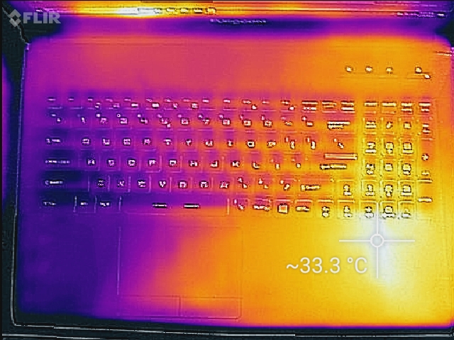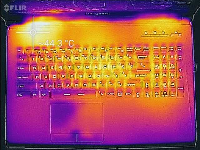 (±) Die Handballen und der Touchpad-Bereich können sehr heiß werden mit maximal 39.8 °C.