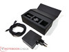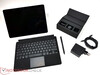 Wir finden in unserer Backer-Edition nette Beigaben, wie etwa ein Poster mit allen Namen der ersten Förderer inklusive Sticker zum Markieren des eigenen Names. Sehr gut gelöst wurde das Netzteil, das zusätzlich zum US-Kontakt drei Adaptereinsätze mitbringt, womit das Eve praktisch fit für einen weltweiten Einsatz ist und ohne zusätzliche klobige Adapter auskommt. Auch ein aktiver Eingabestift sowie das Keyboard Dock gehört zum Lieferumfang und sind im Preis inbegriffen. Insbesondere Microsoft muss sich hier den Vorwurf einer gesalzenen Aufpreispolitik gefallen lassen, zu den ausgewiesenen Preisen für das Surface gesellen sich immer noch die Kosten für das Keyboard-Cover (ab 149 Euro) und sofern erwünscht auch für den Eingabestift (109 Euro). Im Karton finden wir auch noch einen Beutel im Eve-Design als Goodie. Schön: Das Eve V verzichtet auf Zwangsbeglückung der User durch vorinstallierte Bloatware.