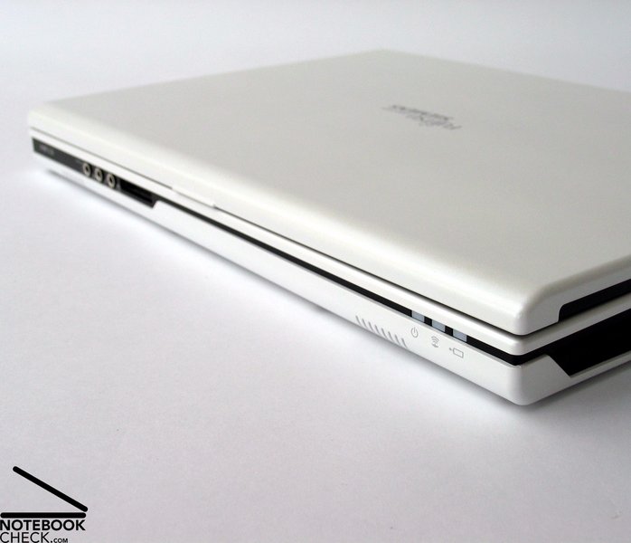 Obwohl das Gehäuse grundsätzlich einen überaus kompakten und robusten Eindruck macht, sind punktuell doch noch einige Problemstellen auszumachen. Beispielsweise im Bereich des Slot-In Laufwerkes, oder aber auch beim Displaydeckel. Beim Verkaufsmodell sollte auch am Schließmechanismus des Bildschirmes noch etwas nachgebessert werden, der bei dem getesteten Pre-Sample deutlich zu wenig Schließkraft zeigte.