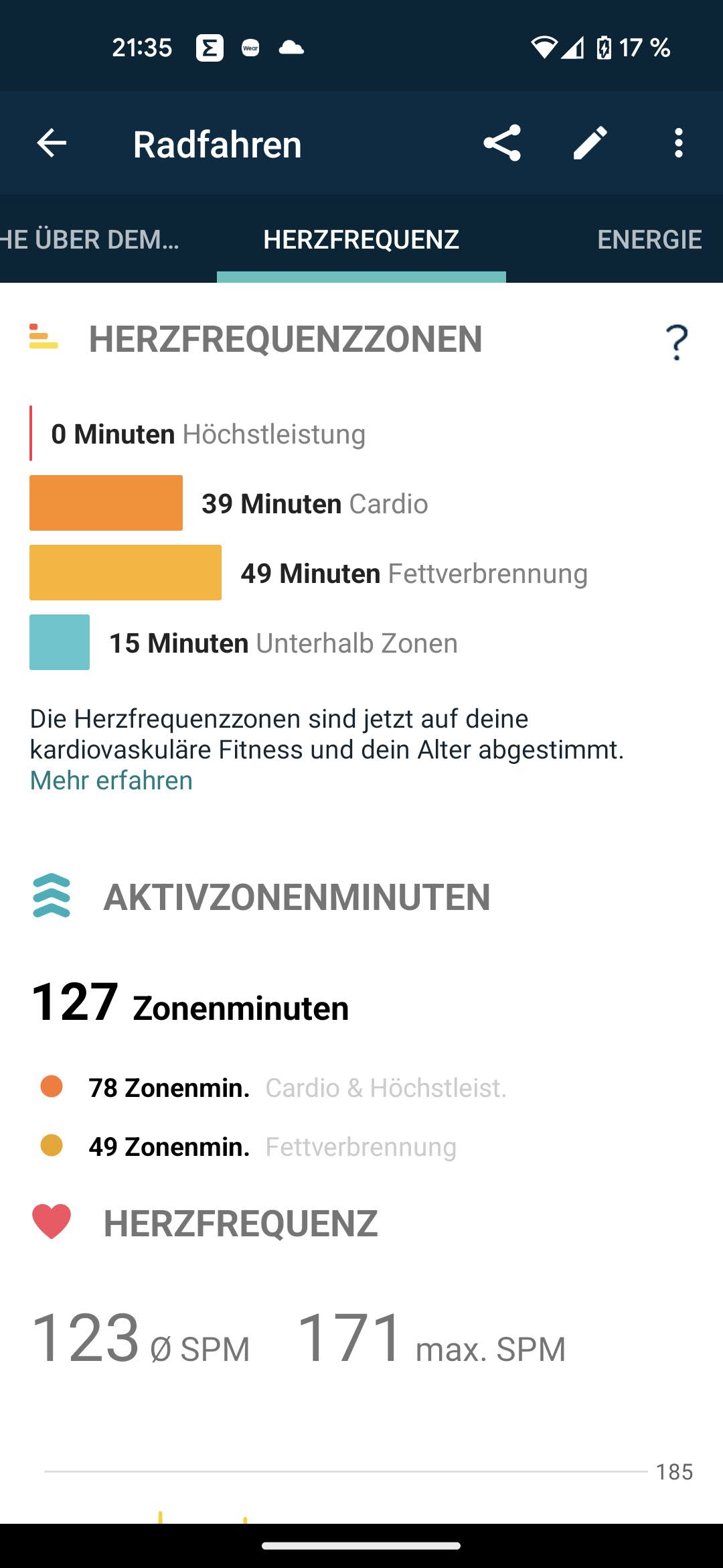 Die Smartwatch gibt außerdem Infos zu Höhenmetern, verbrannten Kalorien und Auswirkungen auf die Tagesstatistik an. Die automatische Trainingserkennung funktionierte im Test zuverlässig.