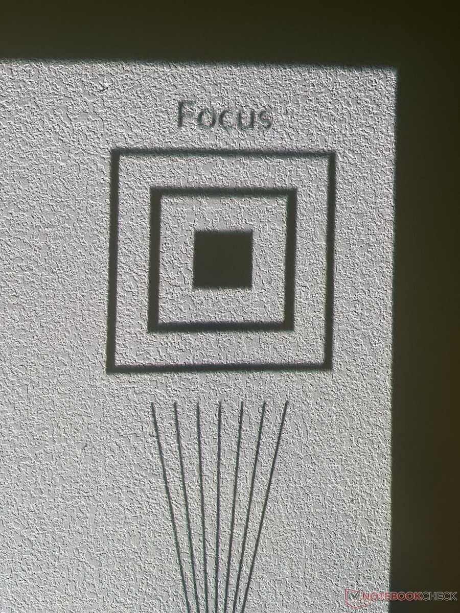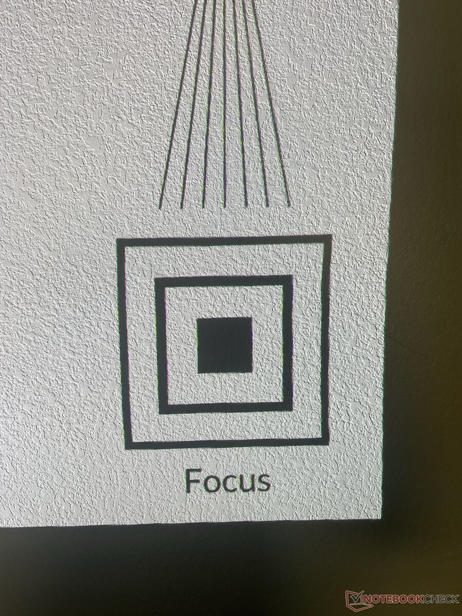 Der größte Fehler, den ich festgestellt habe, ist, dass das projizierte Bild an den Rändern unscharf wird. Ganz gleich, wie wir das Bild fokussiert haben, die Ränder hatten immer eine schmierige Qualität. Dies war unabhängig von der Oberfläche hinter dem Bild; der Rand (insbesondere am oberen Rand) war nie so scharf wie die Mitte des Bildes.