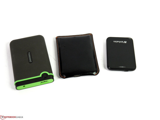 Für die Leistungsfähigkeit zeichnet eine unbekannte 640 GB Festplatte verantwortlich, die aufgrund des leisen Betriebsgeräuschs vermutlich mit 5400 U/min arbeitet. Auch sollte dann ein 8 MB großer Cache zur Verfügung stehen. Das genaue Festplattenmodell ließ sich mit den üblichen Tools nicht auslesen und die Nähte wollten wir mangels ausreichender Nähfertigkeiten auch nicht auftrennen. Die einzige Öffnung in der Lederhaut stellt der USB 3.0 Port dar, der neben der Datenübertragung auch die Stromversorgung übernimmt. Wie bei anderen USB 3.0 Festplatten schon mal beobachtet werden konnte, ist bei dieser Anschlussart nicht immer eine zuverlässige Stromversorgung gegeben. Dieses Problem konnten wir bei der XXS Leather jedoch nicht feststellen. HP Probook 6540b, USB 3.0 ExpressCard und ThinkPad X220 arbeiteten neben unserem Desktop-Testsystem problemlos mit der Freecom Festplatte zusammen.
