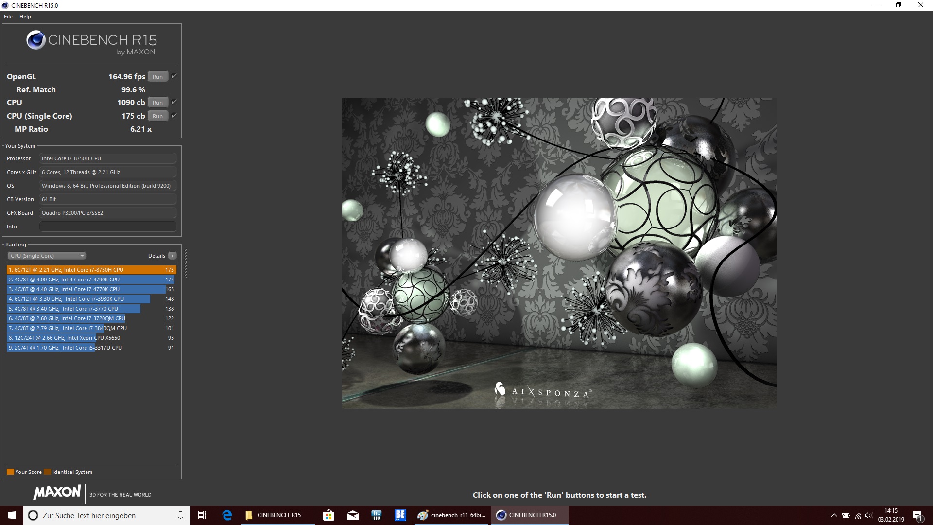 Test Fujitsu Celsius H980 (i7-8750H, Quadro P3200) Workstation