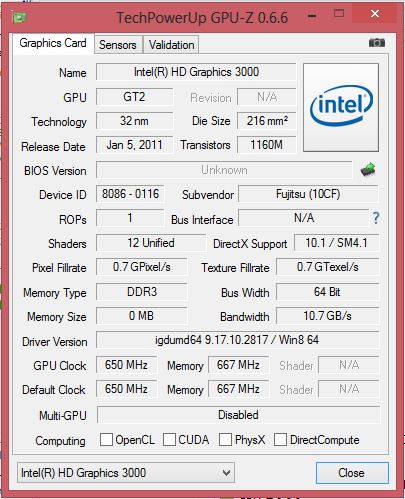 Die integrierte Intel HD Graphics 3000 GPU erledigt die Grafikausgabe. Sie arbeitet mit Geschwindigkeiten von 650 bis 1.100 MHz und unterstützt DirectX 10.1. Auch bei den verschiedenen 3D Mark-Benchmarks treten keine Überraschungen auf. Die Ergebnisse des LifeBooks liegen in der erwarteten Höhe vor. Alle drei Vergleichsgeräte liefern aufgrund ihrer fast identischen Ausstattungen sehr ähnliche Werte.