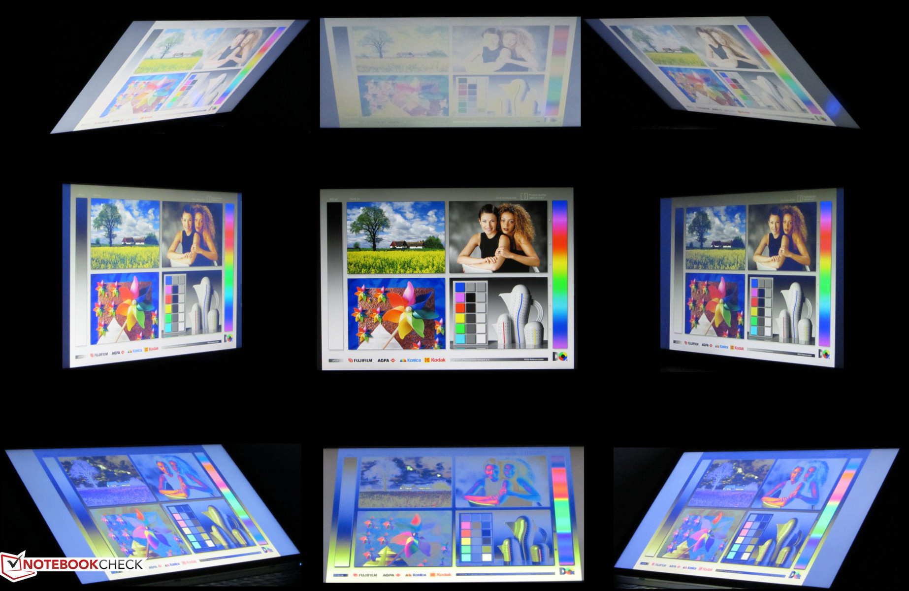 Die Blickwinkelstabilität entspricht den Erwartungen, die man bei dem Preisniveau des Notebooks hat: Eine Änderung des vertikalen Blickwinkels führt schnell zum Einbruch des Bildes. In horizontaler Richtung ist der Winkel großzügiger bemessen.