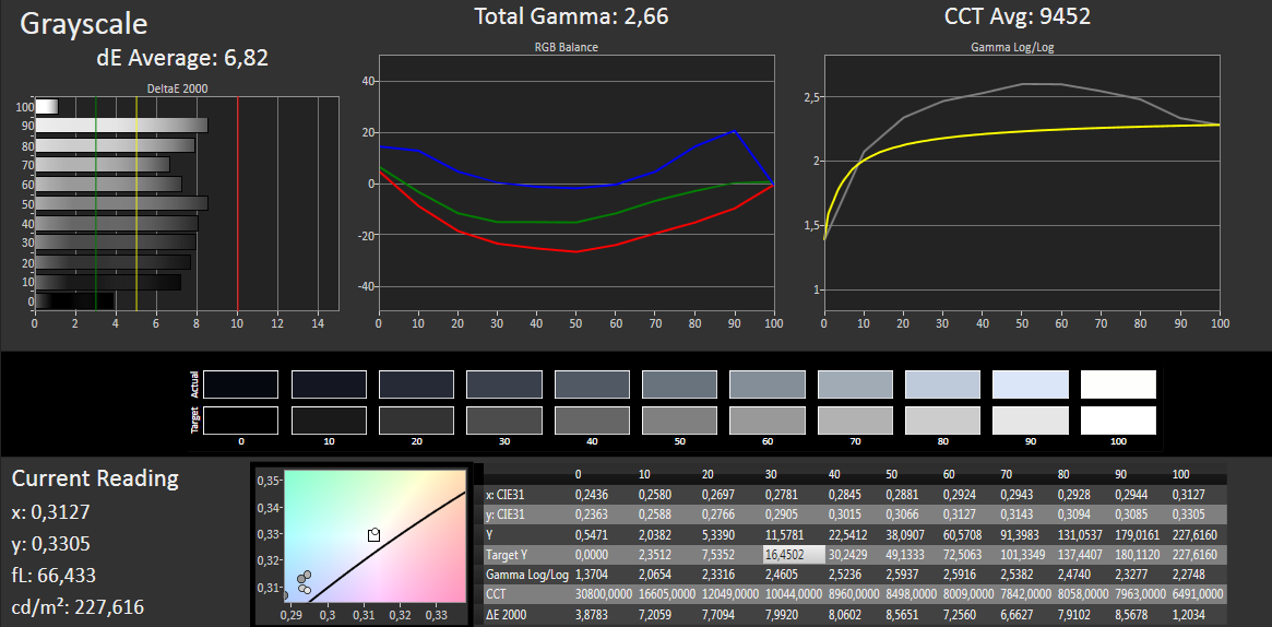 ΔE Greyscale Calman: 6.82 | ∀{0.09-98 Ø5}