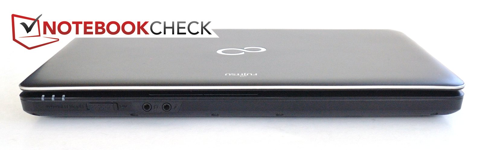 Das Fujitsu ist mit 35 mm Höhe noch nicht direkt dick, es wirkt aber durch die abgerundeten Ecken und dem dünnen Display etwas klobig. Das Gewicht liegt mit 2 kg inklusive Akku im Durchschnitt.