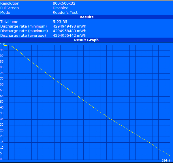 In Laufzeiten ausgedrückt bewegen wir uns beim Fujitsu T580 im eher durchschnittlichen Bereich. Die längste Laufzeit erreichten wir mit dem Battery Eater Readers Test (längstmögliche Laufzeit, minimale Displayhelligkeit) im ECO-Mode in Form von maximal 397 min. Von den versprochenen 8 Std. Laufzeit sind wir trotz oben genannter Einschränkungen damit über 1 Std. entfernt. Diese Laufzeit reduziert sich nochmals im regulären Windows-Energiesparmodus auf 324 min und bei W-LAN Aktivität und angepasster Displayhelligkeit auf 251 min. Von der Festplatte abgespielte Videos (volle Helligkeit) liefen 164 min lang und unter Volllast in Form des Battery Eater Classic Test (längst mögliche Akkulaufzeit, alle Verbraucher an, maximale Displayhelligkeit) schrumpfte die Laufzeit auf genau 120 min. Die Restkapazität des Akkus betrug bei allen Ergebnissen 3%.