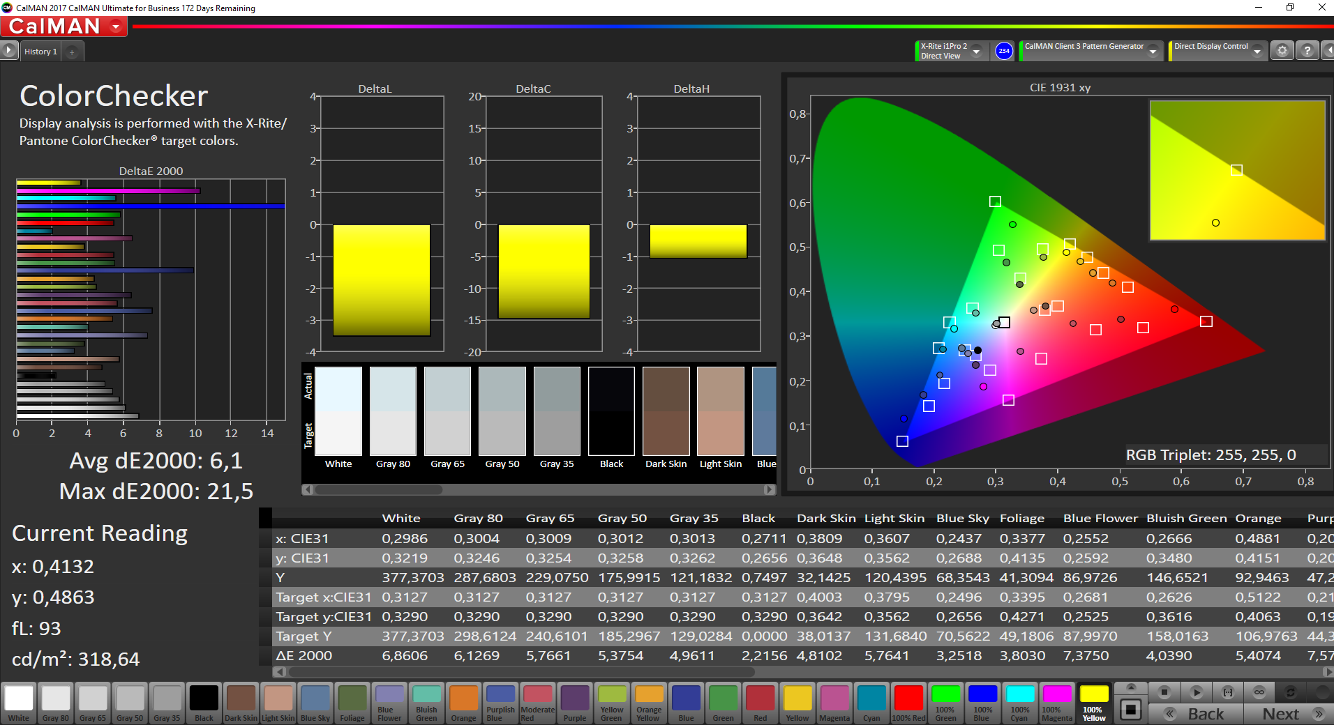 ΔE ColorChecker Calman: 6.1 | ∀{0.5-29.43 Ø4.78}