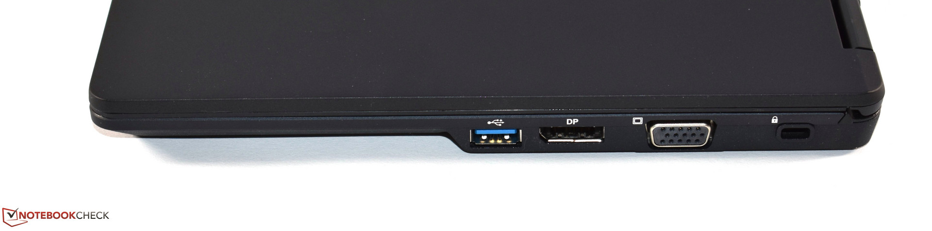 Die Ausstattung an Anschlüssen des LifeBook U728 ist reichhaltig. Einen VGA-Anschluss kann keiner der direkten Konkurrenten von Dell, Lenovo oder HP bieten, ebenso wenig verfügen sie über einen normalen DisplayPort-Anschluss oder einen vollwertigen SD-Kartenleser (der zudem SD-Karten vollständig aufnimmt). Dafür gibt es keinen HDMI-Anschluss und der USB-C-Port beherrscht zwar DisplayPort und Power-Delivery, aber ihm fehlt Thunderbolt 3. Stattdessen setzt Fujitsu als letzter Hersteller auf einen proprietären Dockinganschluss an der Unterseite.