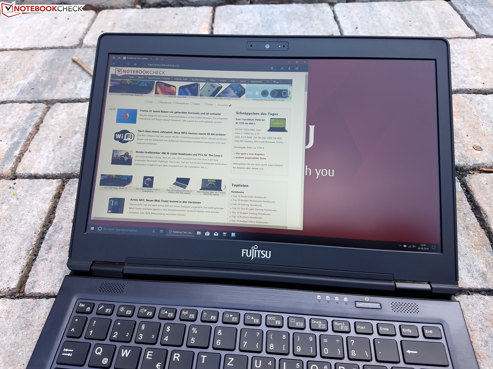 Dass es nicht zu einem "Sehr gut" reicht, das liegt auf jeden Fall nicht an der Ausstattung: Das LifeBook verfügt über zahlreiche Anschlüsse, die wir bei den Konkurrenten teilweise vermissen, zum Beispiel VGA, RJ45-Ethernet und ein vollwertiger SD-Kartenleser. Thunderbolt 3 fehlt zwar, was auch ein Kritikpunkt ist. Da das U728 aber über USB-C und über einen Dockingport an der Unterseite verfügt, ist es unseres Erachtens zu verschmerzen. Ebenso gefällt uns, dass Fujitsu weiterhin auf einen externen Wechsel-Akku setzt – ein seltenes Feature, dass das LifeBook U728 im Prinzip zum traditionellsten Modell der aktuellen Subnotebook-Generation macht. Die restliche Basis des Laptops ist gut: Das Gehäuse ist robust, kompakt und leicht, der Lüfter steht meistens still und die Tastatur ist für ein Business-Gerät angemessen komfortabel. Ein LTE-Modem ist schon ab Werk an Bord und die Erweiterbarkeit ist mit zwei RAM-Steckplätzen sehr gut. Beim Display gibt es sowohl Licht als auch Schatten: Seine Helligkeitswerte sind unter den Business-Subnotebooks vergleichsweise hoch, was gerade in der Outdoor-Nutzung wichtig ist, dafür sind die Messwerte bei der Farbraumabdeckung und dem Kontrast aber schlecht.