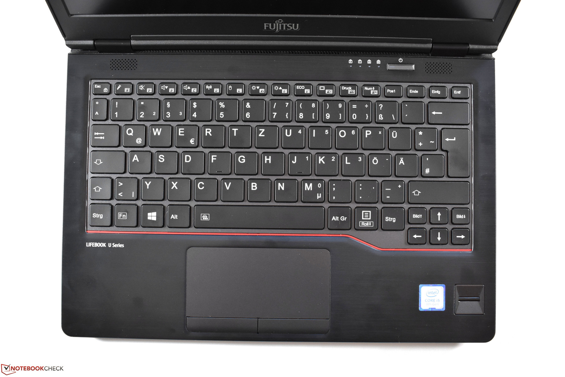 Das LifeBook U728 verfügt über eine Chiclet-Tastatur mit sechs Tastenreihen und einer dreistufigen Hintergrundbeleuchtung (aus / an / heller). Wie üblich bei Subnotebooks handelt es sich nicht um eine Tastatur in der vollen Breite. Das fällt in der Nutzung aber kaum negativ auf, denn Fujitsu hat die Buchstaben- und Ziffern-Tasten in der vollen Größe belassen, stattdessen sind einige Sondertasten an den Rändern der Tastatur kleiner, zum Beispiel die Enter-Taste, die linke Shift-Taste und die Zirkumflex-Taste. Das Tippgefühl der flachen, glatten Chicler-Tasten kann man insgesamt als gut bezeichnen. Der Hub ist mit 1,7 mm für heutige Verhältnisse recht großzügig bemessen und der Druckpunkt der Tasten ist weder zu hart noch zu weich. Der Widerstand könnte allerdings etwas besser sein, das Tastaturfeld ist zudem nicht zu 100 % stabil. Das wirkt sich negativ auf das Tippgefühl aus, zerstört es aber nicht vollkommen. Fujitsu verbaut eine Vieltipper-taugliche Tastatur, wie wir sie in einem teuren Office-Notebook auch erwarten.