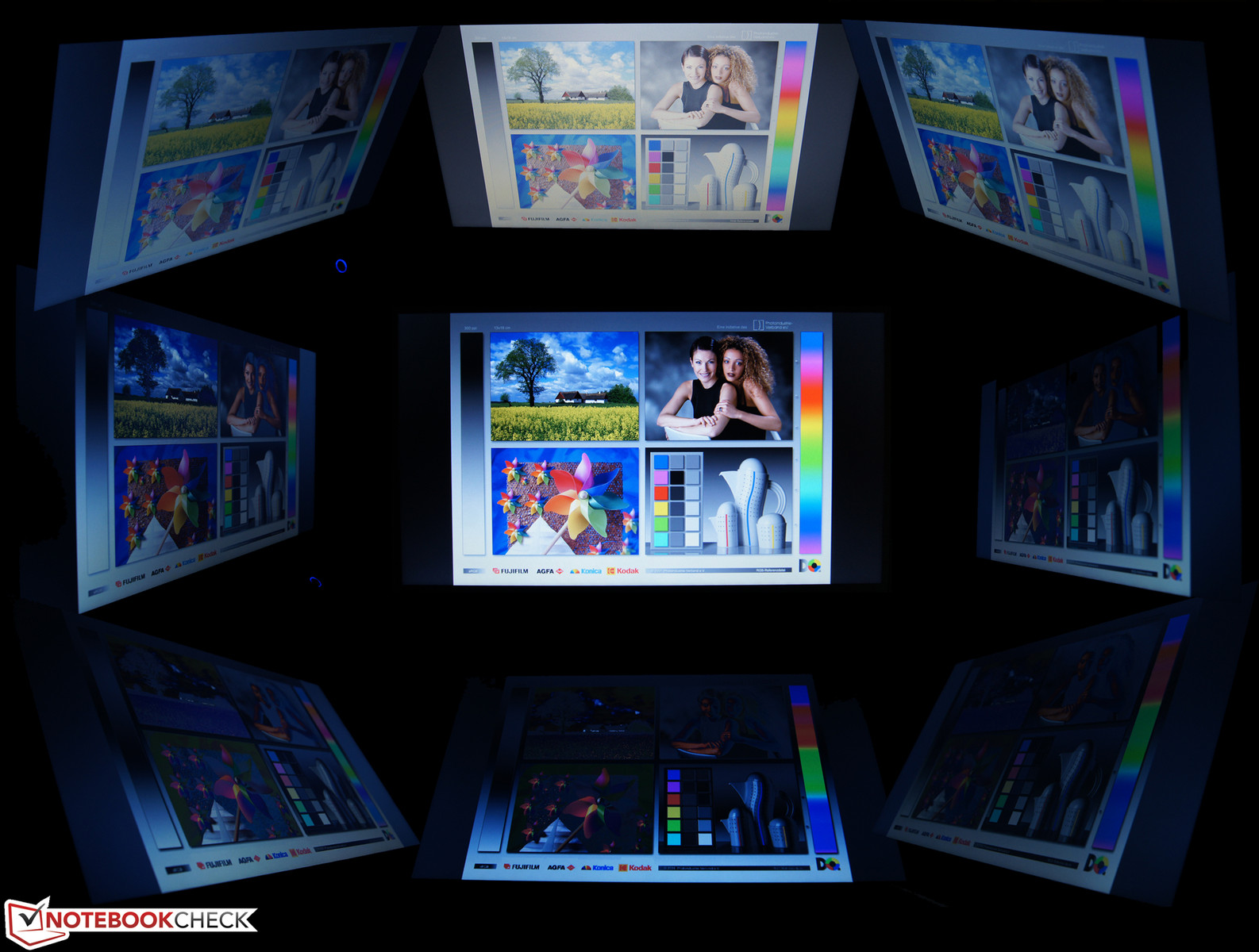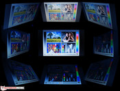 Auf Veränderungen des Blickwinkels reagiert das Display wie man es von einem TN-Panel erwartet. Zwar gibt es über weite Strecken im horizontalen Bereich keine groben Abänderungen der dargestellten Farben, dennoch blassen diese schon bei relativ geringen Änderungen des vertikalen Blickwinkels leicht ab.
