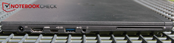 Für ein ultraleichtes Notebook geizt das Fujitsu, im Gegensatz zum AsusPro, nicht mit Anschlüssen und Zusatzfeatures: An jeder Seite bietet es einen vollwertigen USB-3.0-Anschluss des Typs A. Einer davon unterstützt gar "Anytime USB Charge", wodurch man angeschlossene Geräte sogar dann auflädt, wenn das Notebook ausgeschaltet ist. Dafür gibt es nur einen USB-3.1-Typ-C-Anschluss der 1. Generation, also ohne Thunderbolt-Support, dafür aber mit Power-Delivery-Funktion.