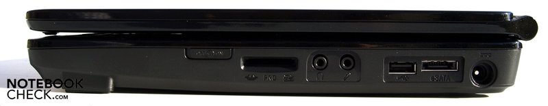 Externe Geräte kann man über eine der insgesamt 4 USB Schnittstellen, eSATA oder FireWire (IEEE 1394) anschließen. Der rechts gelegene 4-in-1 Kartenleser unterstützt die Formate SD, MS, MS Pro, MMC. Wer die Funktionalität seines Fujitsu AH550 gerne erweitern möchte, findet dazu einen Expresscard/54-Slot an der linken Seite.