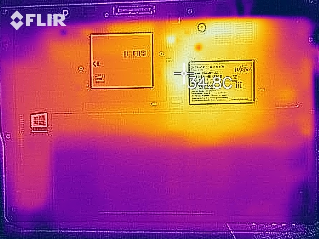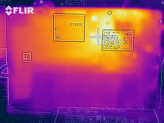(±) Auf der Unterseite messen wir eine maximalen Wert von 42.6 °C (im Vergleich zum Durchschnitt von 36.8 °C).