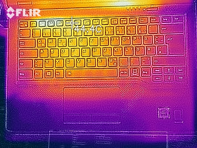 Die Oberflächen des Fujitsu-Notebooks erwärmen sich auch unter Last nicht übermäßig. Die Handballenauflagen bleiben immer kühl und lediglich im hinteren Bereich des Geräts wird die 40-Grad-Marke überschritten. Für den Betrieb auf den Oberschenkeln ist das Lifebook E548 dennoch geeignet. In unserem einstündigen Stresstest steigen die Kerntemperaturen auf 70 °C, die CPU kann den Basistakt von 1,6 GHz aber trotzdem über den gesamten Testzeitraum aufrechterhalten. Mit Einschränkungen wegen zu hoher Temperaturen ist beim Lifebook daher nicht zu rechnen.