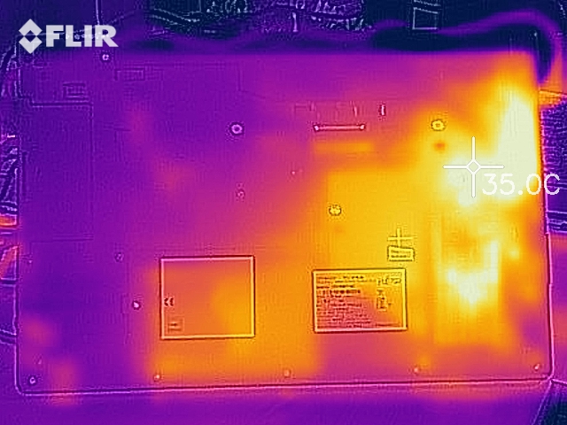Im täglichen Betrieb erwärmt sich das Lifebook E557 kaum. Die höchste Temperatur erreicht unser Testgerät unter Last. An der Unterseite messen wir dabei 35 Grad Celsius. Damit lässt sich das Notebook problemlos auf den Oberschenkeln verwenden.
