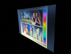 Im Freien ist das Lifebook E557 nur begrenzt verwendbar. Die Helligkeit reicht gerade noch aus, um bei bewölktem Himmel Bildschirminhalte abzulesen. Für längere Arbeiten im Außenbereich ist unser Testgerät aber nicht geeignet. Für ein TN-Panel ist der Blickwinkel sehr stabil. Auch aus sehr schrägen Winkeln können noch Inhalte auf dem Display erkannt werden.