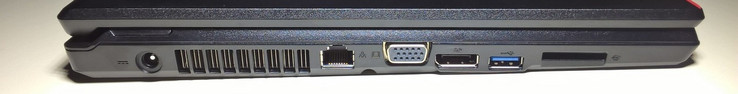 Die gebotenen Anschlüsse wirken etwas altbacken, machen aber für bestimmte Anwendungen Sinn. Da zum Beispiel eine RS-232-Schnittstelle kaum noch zu finden ist, wird das Lifebook E557 schon fast zu einer Speziallösung. Die Positionierung der Anschlüsse ist allerdings etwas unglücklich geraten. Auf der rechten Seite befindet sich das DVD-Laufwerk, vom Nutzer aus gesehen, hinter den Ports. Dadurch sind Kabel beim Arbeiten mit einer externen Maus eventuell im Weg, aber auch das Laufwerk selbst schränkt den Arbeitsbereich ein, wenn es häufig geöffnet werden muss. Unser Testgerät ist nur mit VGA- und Display-Port ausgestattet. Fujitsu bietet aber eine sogenannte Porterweiterung für circa 225 Euro an. Damit werden die vorhandenen Anschlüsse um vier USB 3.0, einen DVI-, einen VGA-, einen eSATA-Anschluss und weitere erweitert.