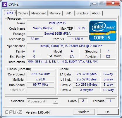 Fujitsu bietet das Lifebook E781 mit insgesamt acht unterschiedlichen Prozessoren der Intel-Core-i-Serie an. Dabei handelt es sich ausschließlich um Zwei-Kern-CPUs. Bei der Leistung ordnet sich unter Testmodell im unteren Drittel der E781-Serie ein. Es ist mit einem Intel Core i5-2430M ausgestattet. Die Doppelkern-CPU ist standardmäßig mit 2,4 GHz getaktet und zählt aktuell zur Mittelklasse unter den Mobilprozessoren aus dem Hause Intel. Dank Turbo Boost kommen beide Kerne auf bis zu 2,7 GHz, der Takt eines Kerns allein kann – ausreichende Kühlung vorausgesetzt – auf bis zu 3,0 GHz angehoben werden.