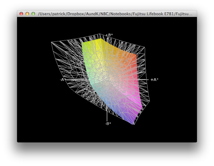 Schwarz sieht beim Fujitsu Lifebook E781 auch schwarz aus, und nicht wie bei vielen günstigeren Geräten eher grau. Vor allem bei Fotos mit dunklen Bereichen oder bei der Filmwiedergabe macht sich der sehr gute Schwarzwert zusammen mit dem hohen Kontrast deutlich bemerkbar. Filme ansehen macht mit dem Gerät einfach Spaß. Da stört auch die nur durchschnittliche Abdeckung des sRGB-Farbraums nicht weiter. Professionelle Grafikbearbeitung ist sicher nicht das Metier der Lifebook-E-Serie.