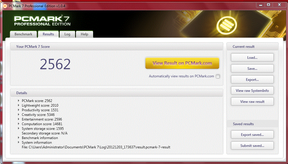 Der PCMark 7 ermittelt einen Gesamtscore von 2.562 Punkten. Das liegt deutlich unter Latitude E6230 und EliteBook 2170p, welche in Sachen CPU-Leistung nicht stärker sind. Diese 12-Zoller besitzen jedoch ein SSD statt einer HDD. Ihr System-Storage-Score fällt entsprechend deutlich höher aus. Dies macht sich auch in der gefühlten Arbeitsgeschwindigkeit bemerkbar. Die SSD-Systeme arbeiten merklich agiler, denn Programme werden schneller geladen und Dateien rasant kopiert. Das Schwestermodell P772 wird von Fujitsu derzeit ausschließlich mit einer 128 GB SSD verkauft. Unser damaliges Testgerät basierte noch auf einer langsamen Festplatte gleichen Typs wie unser P702 (Toshiba MK3261GSYN).