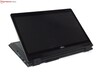 Unterschiede findet man im Bereich des Displays: Das Display hat eine Glasscheibe vorgesetzt. Diese schützt das Display einerseits vor Tastaturabdrücken, andererseits verleiht sie dem Display-Cover aber auch noch etwas mehr Stabilität. Anders als bei der U-Serie kann man das Display um 360 ° umklappen, die Konstruktion der Scharnieren ist also auch anders. Bei einem solchen Design lässt es sich nicht vermeiden, dass das Display etwas nachwippt, besonders in ruckeligen Umgebungen, oder wenn man den Touchscreen im Laptop-Modus nutzt. Hier gibt es aber Geräte, die wesentlich schlechter abschneiden, das Nachwippen hält sich in Grenzen. Das Display lässt sich nicht einhändig aufklappen.
