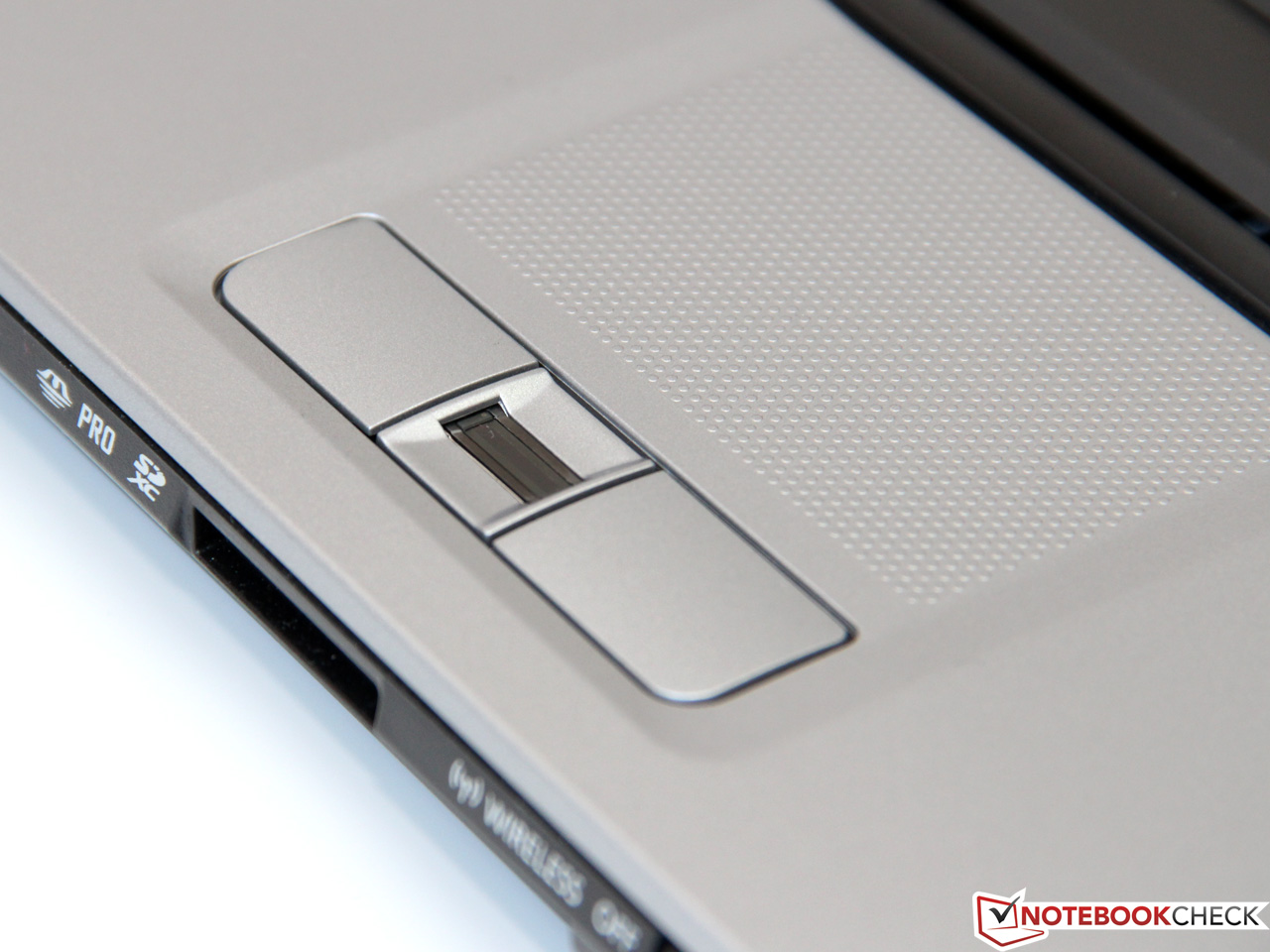 Links und rechts des Fingerabdruck-Scanners befinden sich die beiden Maustasten. Der knackige Druckpunkt erfordert einen verhältnismäßig hohen Kraftaufwand, vermittelt dafür aber einen soliden und langlebigen Eindruck.