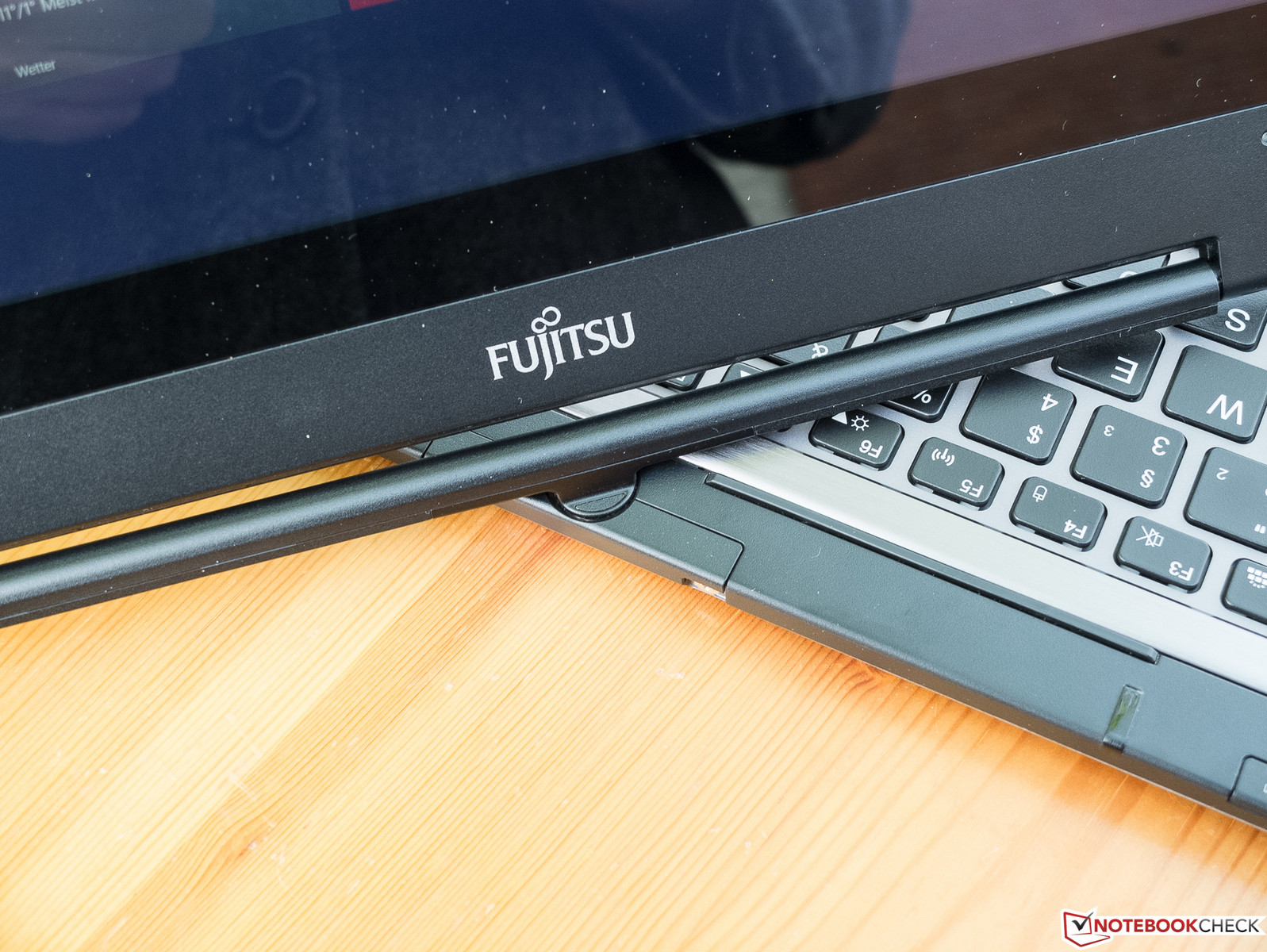Durch das mittige Drehgelenk, das solider wirkt, als es aussieht, lässt sich der aufgeklappt Bildschirm um 180 ° drehen und dann auf die Tastatur klappen, sodass man ein Tablet erhält. Die Konstruktion ist filigran, und sollte einem das Ultrabook in geöffnetem Zustand herunterfallen, ist fast sicher mit einer erheblichen Beschädigung zu rechnen. Aber das Konzept hat auch Vorteile: Der Mechanismus nimmt wenig Platz ein, sodass das Convertible einem normalen Notebook ähnlicher sieht als man das etwa vom Asus Taichi mit seinen beiden Bildschirmen oder den Sony Convertibles behaupten kann, deren Konstruktion für ein deutlich zerklüfteteres Erscheinungsbild sorgt, als das beim Testgerät der Fall ist. Das kantige Fujitsu Design hat dank einiger herstellertypischer Designelemente wie dem unter den Cursortasten nach unten gezogenen Tastaturbett zwar eine eigene Formensprache mit Wiedererkennungswert zu bieten, ist aus unserer Sicht aber insgesamt eher schlicht geraten. Da Understatement bei vielen Business Usern gefragt ist, dürfte Fujitsu hier den richtigen Mittelweg gewählt haben.