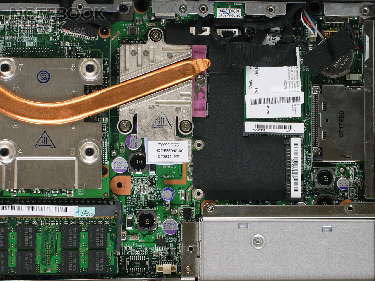 Das FSC Amilo Pi 2530 setzt auf Intels Centrino-Technologie der vierten Generation (Codename: Santa Rosa). Als Hauptprozessor kommt in unserem Testgerät ein Core 2 Duo T7100 mit zwei Rechenkernen zu je 1,80 GHz Taktfrequenz zum Einsatz. Die beiden Prozessorkerne können gemeinsam auf 2 MByte L2-Cache zurückgreifen und werden über einen 800 MHz schnellen Systembus an die Northbridge des Mainboards angebunden.
