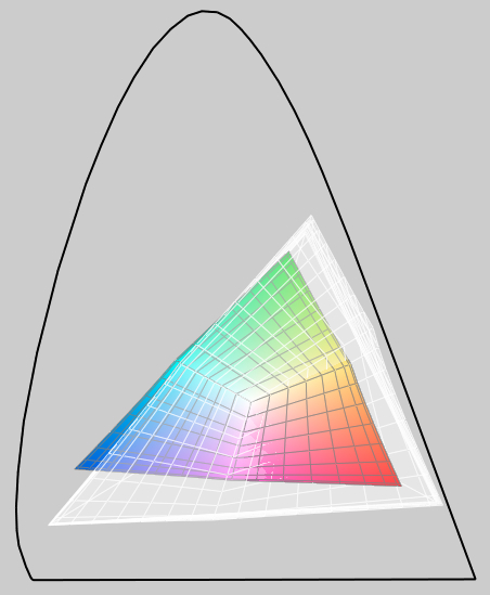 Der Farbraum des verwendeten TN Panels ist vergleichbar mit dem des MacBook Aluminium und deutlich unter dem RGB Farbraum anzusiedeln. In der Auslieferung ist die Farbdarstellung sehr kühl ausgelegt.