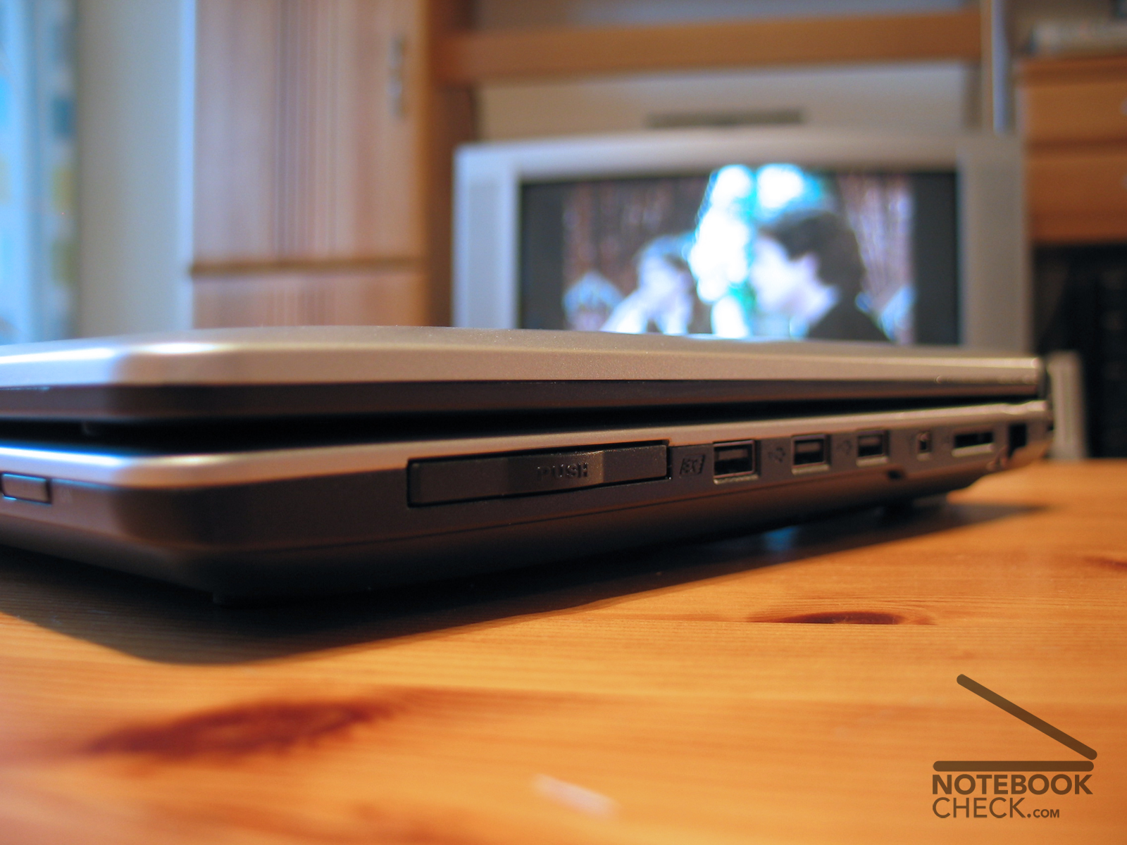 Weiteres interessantes Detail - die mitgelieferte Fernbedienung (die im Express Card Slot verschwinden kann) wird per USB Infrarot Empfänger angeschlossen, obwohl das Notebook eine Infrarot (Blind-)Abdeckung an der Vorderseite hat.