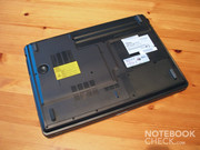 Die Unterschale ist robust gefertigt und lässt sich kaum eindrücken. Dies steht jedoch im krassen Kontrast zur Displayabdeckung. Diese besteht nur aus einer dünnen Kunststoffschicht und lässt sich sehr leicht eindrücken. Hier besteht akute Gefahr für das Display-Panel. Wenn man das Gerät jedoch, wie bei einem Desktop-Replacement angedacht, nur auf dem Schreibtisch stehen hat, dann fällt dies wenig ins Gewicht.