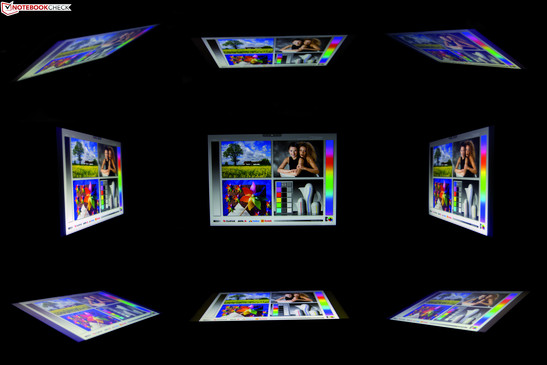 Dank der IPS-Technologie überzeugt die Blickwinkelstabilität. Sowohl in der Horizontalen als auch Vertikalen bleibt das Bild durchweg stabil und Veränderungen des Referenzbildes sind nicht festzuhalten. Einziger Nachteil ist die vorgesetzte „Scheibe“ mit einer reflexionshemmenden Oberfläche. Diese vermindert Reflexionen, spiegelt aber mehr als beispielsweise ein matter Bildschirm ohne diesen Vorsatz.