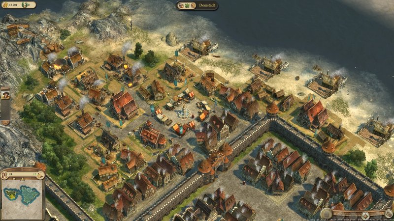 Die Aufbauspiel-Referenz Anno 1404 beweist der Konkurrenz eindrucksvoll, was im Strategiegenre technisch alles machbar ist. Die idyllische Mittelalterwelt ist eine absolute Augenweide, sich auf das eigentliche Spielgeschehen zu konzentrieren fällt mitunter schwer. Wie Sie auf dem Performancegraphen sehen, schwankt die Bildwiederholrate meist heftig. Dieser Umstand ist damit zu erklären, dass das System je nach Zoomstufe unterschiedlich stark belastet wird.