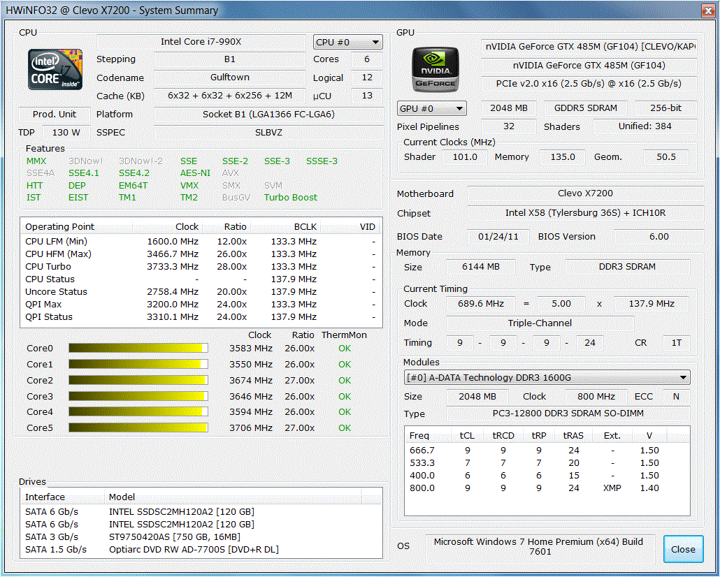 - Nvidia GeForce GTX 485M SLI