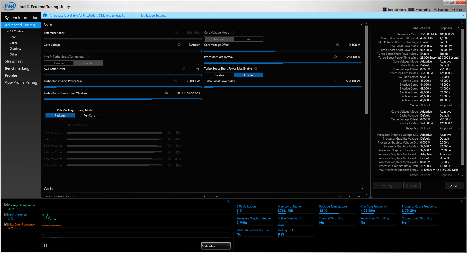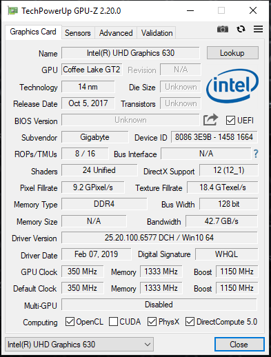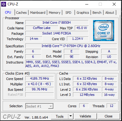 Das Aero 15 wird von einem Intel-Core-i7-9750H-Sechskernprozessor (Coffee Lake Refresh) angetrieben - dem Nachfolger des Core i7-8750H. Die CPU verfügt über eine TDP von 45 Watt. Der 9750H arbeitet mit einer Basisgeschwindigkeit von 2,6 GHz. Per Turbo kann der Takt auf 4 GHz (sechs Kerne), 4,1 GHz (fünf Kerne), 4,2 GHz (vier Kerne), 4,3 GHz (drei Kerne), 4,4 GHz (zwei Kerne) bzw. 4,5 GHz (ein Kern) gesteigert werden.